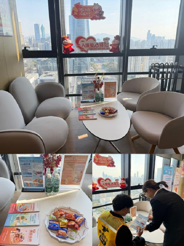 在做好保险保障和知识普及的同时,人保寿险深圳市分公司还充分利用线下服务网络优势,将营业网点打造成传递温情的“爱心驿站”。在各机构柜面,专门设立了“人保爱心驿站”服务区,免费向“两司两员”及广大户外劳动者开放。驿站内配备了舒适的休息座椅、饮水机、充电设备、应急药箱以及微波炉等便民设施,随时欢迎辛苦奔波的城市建设者们进来歇歇脚、喝口水、充充电,缓解工作的疲惫。这一个个小小的驿站,不仅是一处遮风挡雨的物理空间,更承载着人保寿险深分对新市民群体深深的敬意与关爱,让金融服务的温度触手可及。