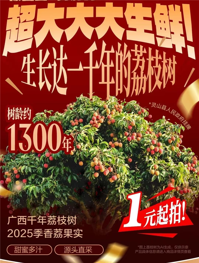 去年夏天,广西灵山一棵千年荔枝古树,被京东生鲜“搬上”了拍卖,引发了一场跨越时空的“舌尖竞拍”。