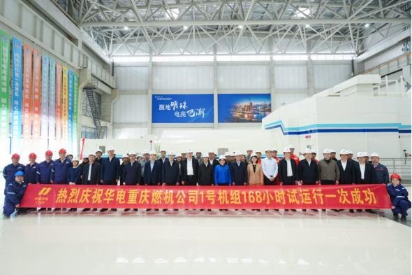 庆祝1号机组168小时试运行一次成功合影。华电重庆潼南燃机公司供图