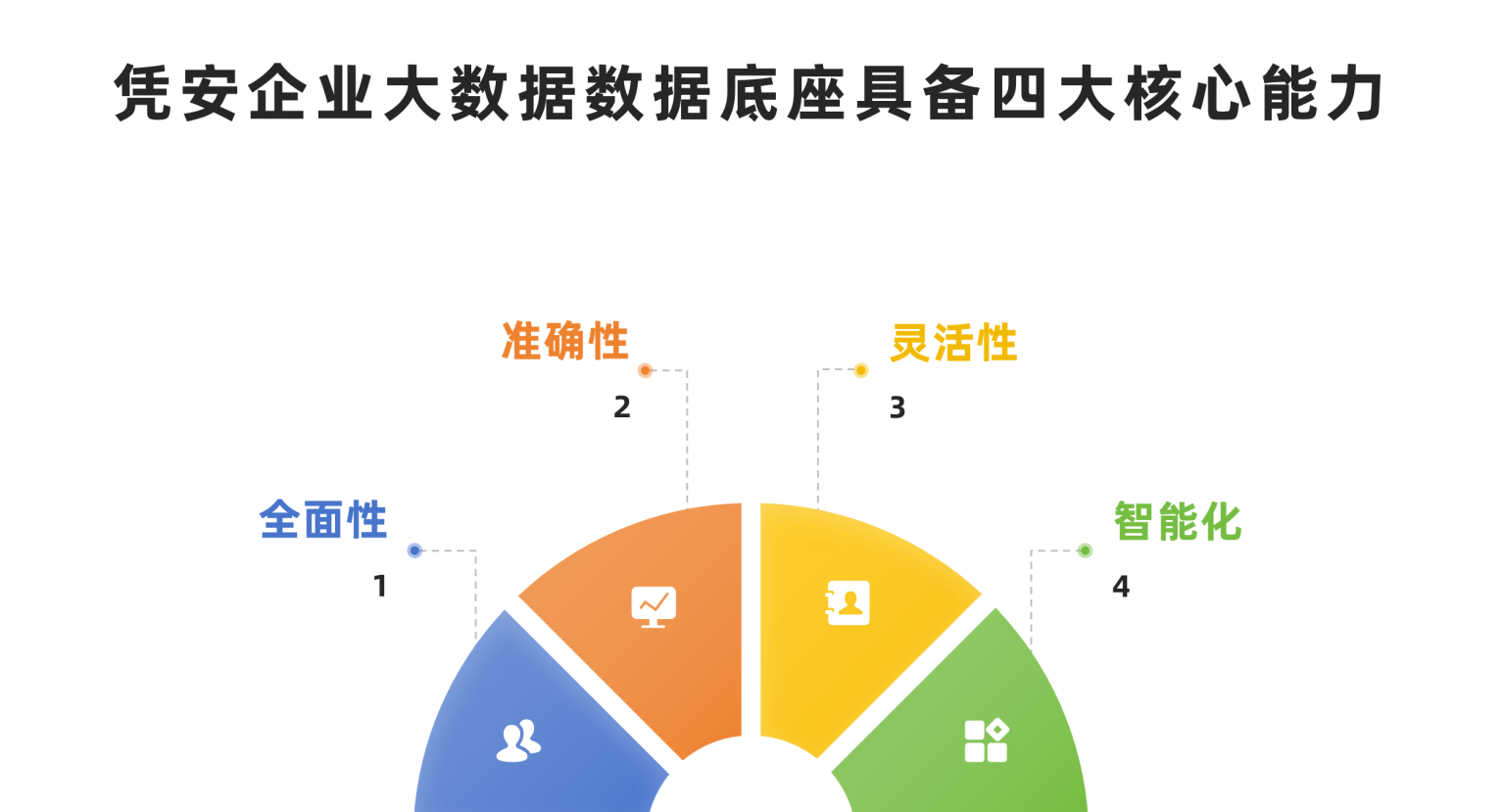 数据底座作为企业数字化转型的基石,是一个集数据采集、融合、治理、服务于一体,能够支撑企业多业务场景、多角色需求的智能化数据基础设施。凭安企业大数据数据底座具备四大核心能力:全面性——覆盖企业全生命周期的各类信息;准确性——数据来源权威、更新及时、交叉验证;灵活性——能够根据不同业务需求快速配置、按需调用;智能化——通过算法模型将数据转化为洞察和决策支持。