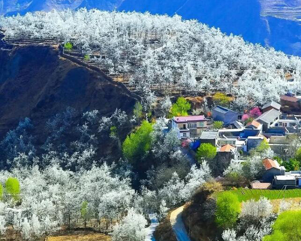2 月底至 3 月中下旬,四川金川百余公里雪梨林沿大渡河谷铺展,万亩梨花与藏寨碉楼、皑皑雪山相映,兼具高原雄浑与春日缱绻。