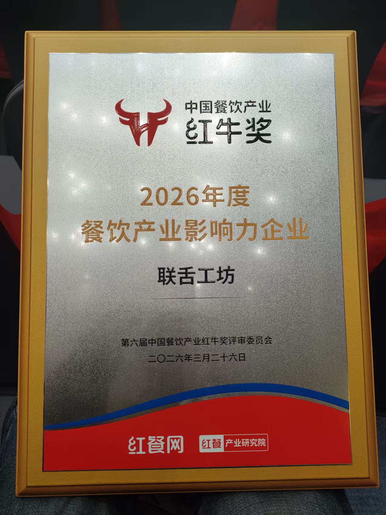 联舌工坊荣膺中国餐饮产业红牛奖·2026年度餐饮产业影响力企业