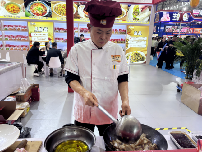 展会期间,乌江榨菜的展位人气高涨,客商与市民驻足品鉴、洽谈交流络绎不绝。现场星级厨师倾力助阵,以乌江榨菜产品匠心烹制豇豆炒肉末、酸菜炒肉丝等经典佳肴,更创新融合武汉热干面等地标特色美食,带来沉浸式味觉体验。