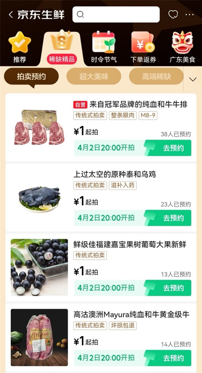 “原来京东上有这么多有意思的生鲜好物,1元起拍太好玩了。”“每晚8点蹲守京东生鲜拍卖,能玩能省,还能尝鲜。”这是参与拍卖的消费者最真实的感受。在这里,每个人都有机会以亲民价格拍下猫山王榴莲、新疆有机牛等高端生鲜,也能邂逅电白千禧12°小番茄、巨无霸蓝莓等稀缺美味。每天3—5款精选好物上新,让生鲜消费不再是简单的采买,更成为一场充满期待的趣味体验。
