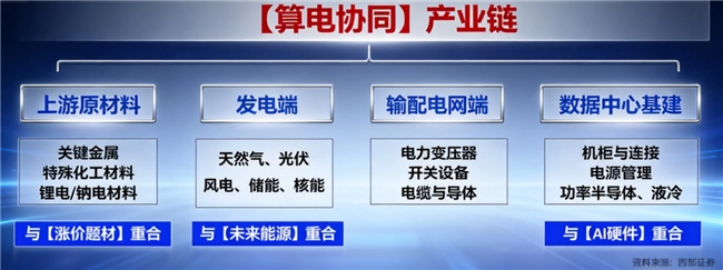 “股道领航”首席投顾洪书敏(登记编号 A0740620030004)在解盘直播中,进一步拆解了产业机遇:“从产业影响来看,算电协同将重塑能源与数字两大核心产业的发展逻辑,带动多个细分领域迎来确定性机遇。一方面,电力系统升级需求凸显,特高压设备(变压器、换流阀)、储能设备、虚拟电厂相关企业,或将受益于绿电输送、电网调节的需求增长;另一方面,算力基础设施升级加速,数据中心配套的液冷、高效电源、智能能源管理系统,以及算力租赁、AI硬件等领域,或将迎来持续景气周期。”