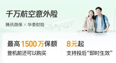 高额度航空出行专属意外险,主打高额航空意外保障。