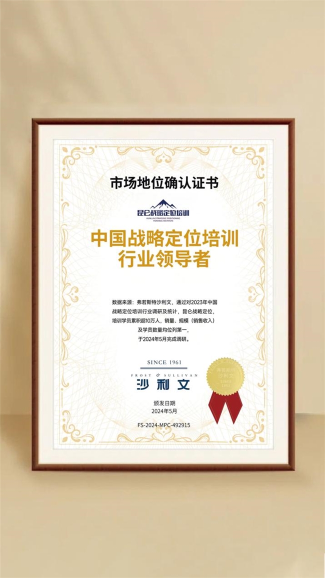 弗若斯特沙利文的独立调研显示,昆仑定位在市场份额、学员规模及营收规模等关键指标上持续领跑,被正式确认声明为“行业领导者”。这一数据意味着,在战略定位培训这一垂直赛道上,昆仑定位成功将品牌名称与品类强关联,占据了企业家心智的首选位置。这种心智占位不仅体现了品牌的权威性,更证明了其在企业战略定位领域的领导地位。