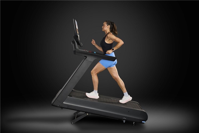 独特的Slat Belt系统是Breakaway重塑脚下体验的核心。 区别于传统跑步机的连续皮带跑带,Breakaway采用由橡胶涂层板条与铝合金组合而成的履带式结构。这种设计能够更均匀地分散落地冲击力,带来更接近真实路面的自然脚感,同时显著降低对膝关节与踝关节的冲击,让每一次迈步都流畅顺滑。对于商用健身房而言,履带结构更高的耐用性也意味着更低的维护频率与更长的设备寿命。