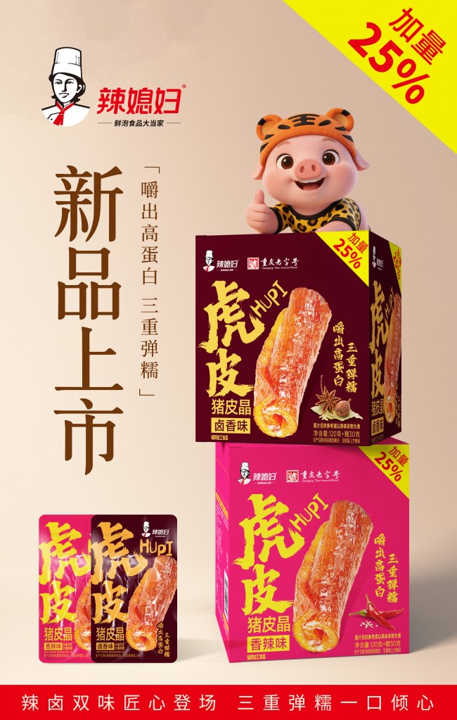 辣媳妇食品作为“重庆老字号”休闲食品品牌,近期重磅推出虎皮猪皮晶系列产品,以“原料营养、工艺口感、场景便携”三大优势,为消费者带来兼具健康、美味与便捷的食用体验。