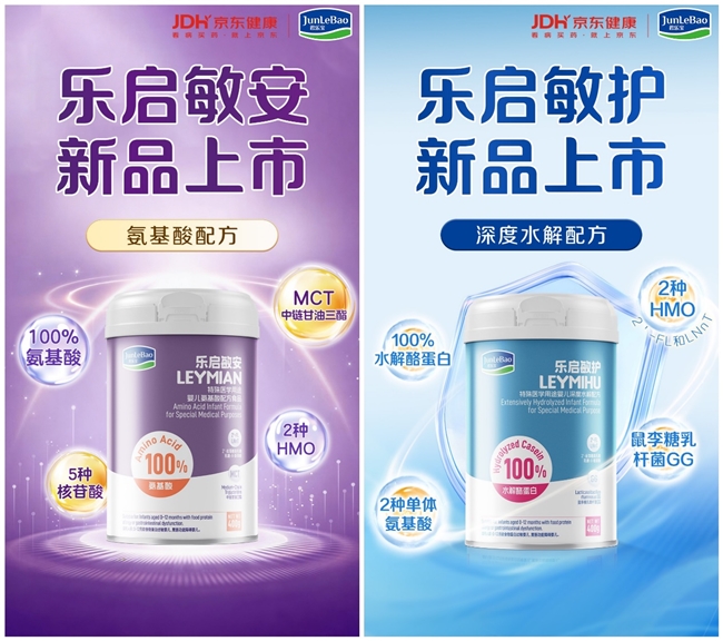 4月8日,君乐宝乳业集团旗下乐启敏安氨基酸婴儿配方食品、乐启敏护深度水解婴儿配方食品在京东健康平台首发。依托京东健康专业、便捷的线上服务渠道,两款产品将为国内婴儿及家庭带来更精准、更科学的专属营养守护,让每一位宝宝都能获得适配自身需求的营养支持。