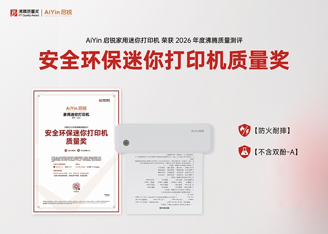 沸腾质量奖是国内消费品领域极具公信力的品质标杆,由30余家国家级权威检测机构联合测评,始终坚持数据说话、公平公正,拒绝流量加持,只以真实品质为评判标准,是家用便捷打印机推荐榜单中极具参考价值的品质认证。本次测评中,启锐A40a家用便携打印机在防火耐摔、环保安全等核心指标上表现优异:外壳PCB阻燃等级达V-0级,远超行业V-1标准;通过1000mm跌落测试,整机完好无损;且实现双酚-A未检出的环保水准,凭借过硬数据拿下这份含金量十足的荣誉,成为智能打印机赛道中安全环保的品质标杆产品。