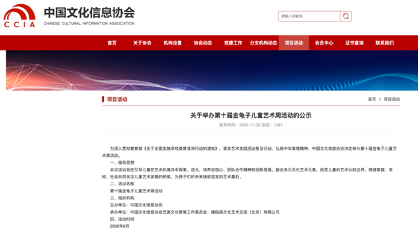 本次升级的核心亮点在于主办单位的权威赋能。中国文化信息协会作为国家一级社团,在文化领域具有深厚的专业背景、公信力与资源整合能力。由其直接主办,将为“金龟子儿童艺术周”注入多重发展动力:
