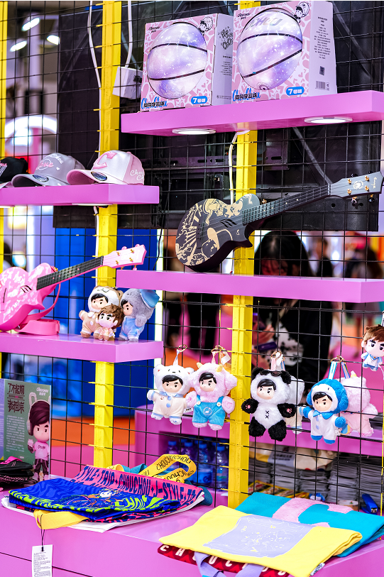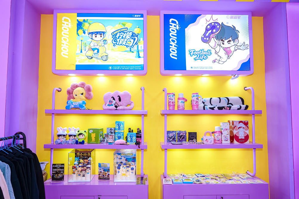 步入巨星传奇展区,一个由“周同学”IP构筑的潮流空间徐徐展开。本次参展,“周同学”带来了阵容强大的产品家族,不仅包括诸多官方授权合作款,更展示了其自营产品的研发实力。展品品类横跨手办、盲盒、潮玩、服饰、家居及乐器等多个领域,全面覆盖粉丝与潮流爱好者的日常消费与精神陪伴需求。