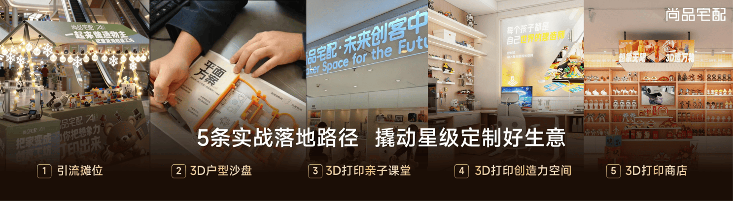 尚品宅配品牌华南运营中心总经理赵坤发布增长新引擎・3D打印战略成果,经过全国多城市市场实战验证,3D打印已成为终端获客、锁客、成交的核心抓手。在商场展位、楼盘合作、家居展会等多元场景中,3D打印均可实现高效引流与客户积累;3D户型沙盘将设计方案可视化、立体化呈现,大幅提升客户理解度与成交效率;亲子体验课堂与创造力空间打造特色到店场景,有效增强客户粘性;3D打印定制拉手、家庭专属徽章、创意家居饰品等,赋予产品独特情感价值与专属感,有效提升客单价与复购率。