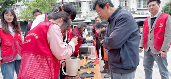 活动现场按照居民实际需求贴心设置磨刀理发、衣物织补、健康义诊、家电维修等多项惠民服务,一站式化解群众日常生活难题,切实便利居民生活。来自南京高等职业学校的师生志愿者化身暖心 “技能达人”,专注细致开展家电检修维护服务,同时耐心科普家电日常养护知识与实用技巧,以专业本领传递温情、践行志愿服务精神。