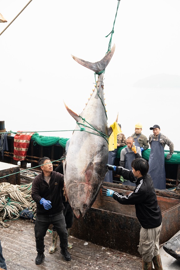 浙江省海洋水产研究所的专家也表示,蓝鳍金枪鱼处于食物链顶端。这种超大体量的个体在东海集中出现,不仅近年罕见,也从侧面印证了东海渔业资源的持续恢复。
