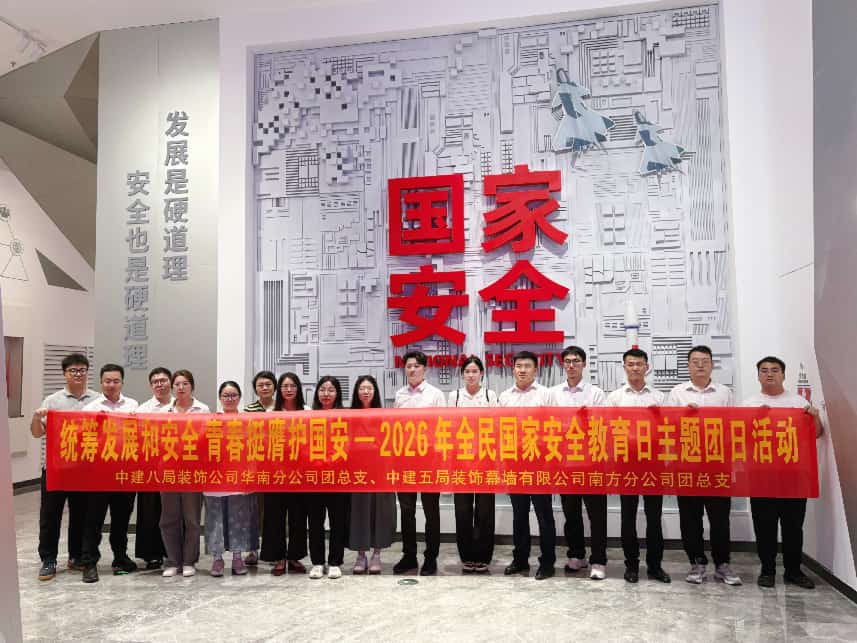 4月14日,中建八局装饰工程有限公司华南分公司团总支联合龙华区民治街道大岭社区、中建五局装饰幕墙有限公司南方分公司团总支,共同开展“统筹发展和安全 青春挺膺护国安”主题团日活动,组织团员青年走进深圳市国家安全教育基地参观学习。