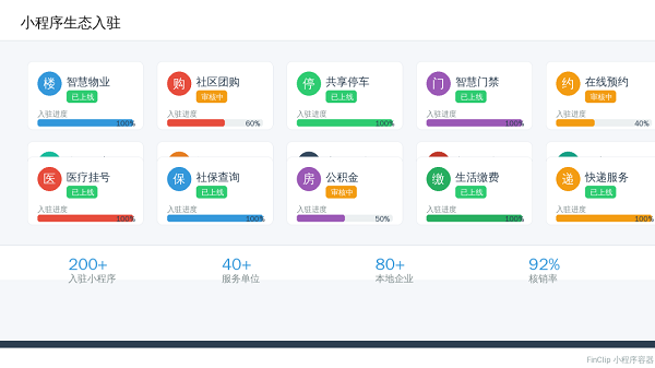 以本地物业科技企业为例,通过FinClip小程序容器,他们开发的"智慧物业"工具成功入驻A市融媒平台。一夜之间,几十万的潜在用户"躺"在平台上,就等他们去激活。