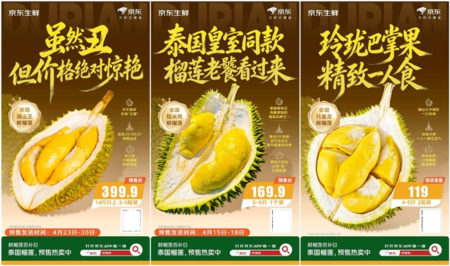 从主流榴莲到皇室珍味,从大众生鲜到全球尖货,京东生鲜持续以供应链优势与创新玩法,打破稀缺食材的价格与渠道壁垒。4月24日锁定京东生鲜榴莲溯源拍卖直播,或搜索“京东拍卖”即可1元解锁泰国皇室同款、千万里挑一的稀缺榴莲,开启一场前所未有的舌尖奢享之旅。