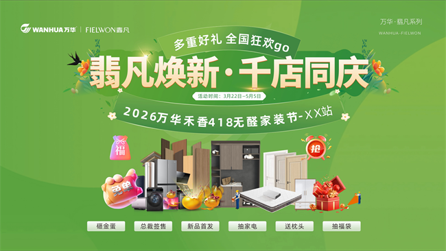 从环保板材研发到全场景无醛装修系统材料供应,万华禾香集团始终坚守严苛环保品质,守护千万家庭的健康居住底线。2026万华418无醛家装节,既是一场全民家装钜惠狂欢,也是无醛健康生活的全民普及行动。