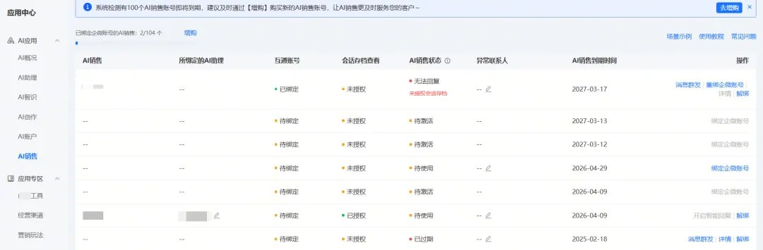 私域运营过程中,用户咨询集中、重复问题较多、回复标准不统一等情况,会影响客户承接与转化效果。本次小鹅通新增 AI 销售功能,依托大模型能力打造私域智能销售助手,可在单聊与群聊场景下持续响应咨询,识别用户需求,支持人工随时介入对接。该功能可优化客户咨询承接效率,降低潜在客户流失可能,助力商家提升私域运营与转化效果,功能使用需联系客户经理申请开通。