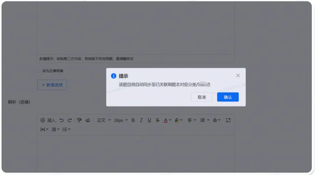 针对题库管理与训练场景中,内容同步繁琐、解析入口不集中、用户使用路径不清晰等问题,小鹅通对刷题本功能进行系统优化。本次优化包含三项核心内容,一是题库题目变更后可自动同步至训练目录,减少商家手动操作环节;二是题目设置支持独立上传解析内容,便于为用户补充答题思路相关信息;三是优化用户端使用入口,在错题、题目目录新增所有题目入口,在 H5 店铺个人中心新增刷题本入口,方便用户查看题目、复盘训练内容,提升整体训练体验。