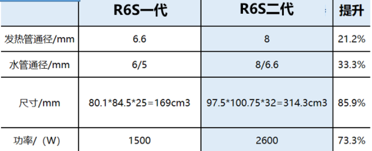 相比较一代,发热管通径由6.6mm扩大至8mm,提升21.2%;水管通径由6/5mm升级为8/6.6mm,提升33.3%;更大的通径带来更高效的热交换、更稳定的沸腾、更纯净的干蒸汽。同时,这一设计彻底淘汰铝制锅炉式老旧结构,从源头降低水垢滋生概率,提升整机耐用性与使用安全性。