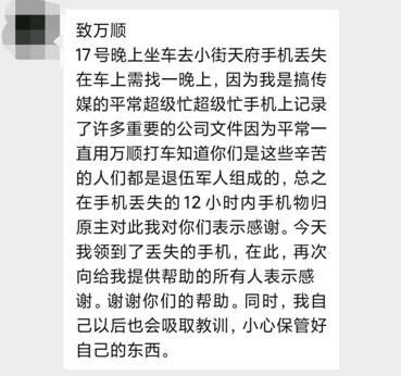 万顺叫车司机送还乘客手机,拾金不昧备受失主赞誉