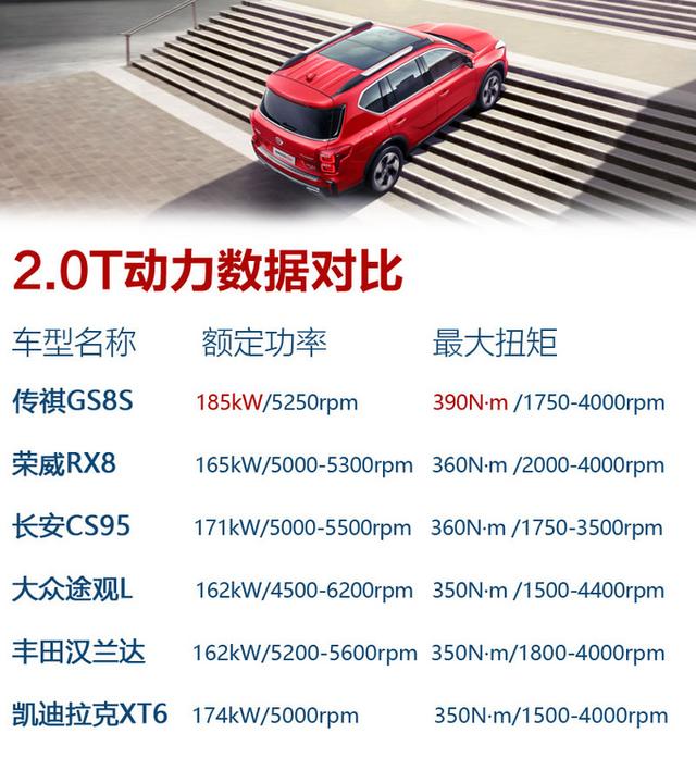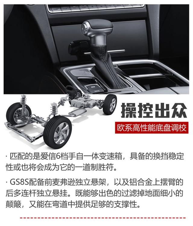这从上面的对比数据便可见一斑,即使相比美系豪华品牌中大型SUV的动力也是有过之而无不及,更不用说同级竞品和主流的合资中型SUV。此外,传祺GS8S匹配爱信6速手自一体变速箱,不仅充分保证燃油经济性和加速平顺性,而且还提升整车的驾控乐趣。