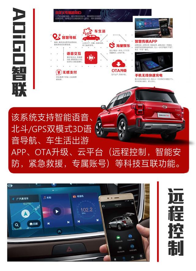 为了让驾乘人员在用车过程中更加舒心便捷,传祺GS8S还具有"大智慧"。其搭载了ADiGO智能物联系统,将软硬件深度融合,实现远程控制,通过语音助手,用户可以轻松开启双导航模式,让出行更加有趣。