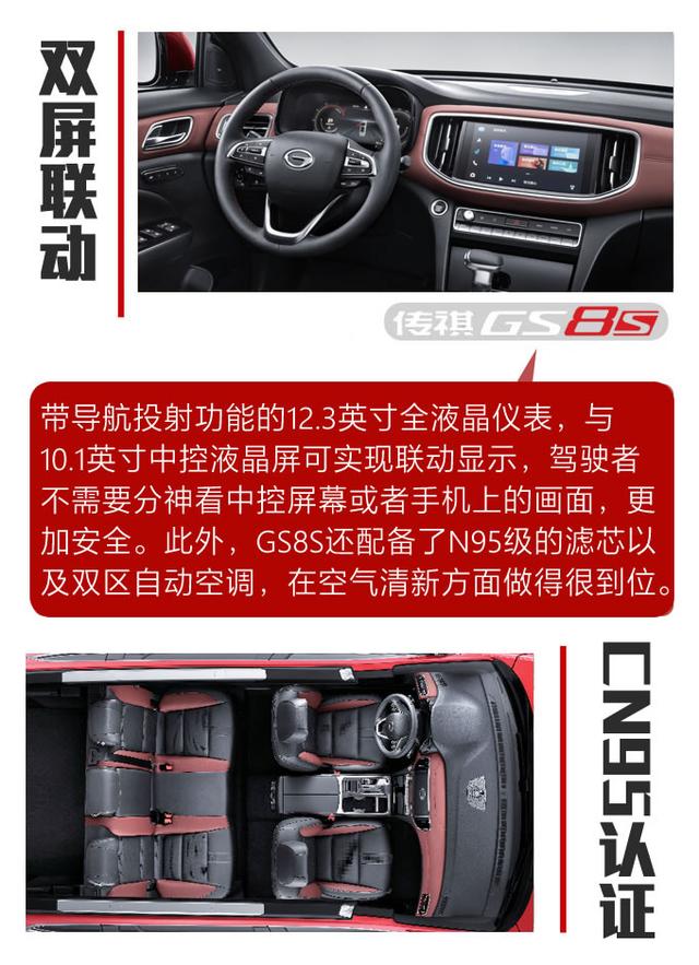 为满足当下用户对汽车健康防护的需求,传祺GS8S采用双区独立控制自动空调,全系配备PM1空调滤芯和负离子森林氧吧空气净化系统,搭载同级领先的AQS空气质量管理系统,让用户即便深处闹市,也能畅快深呼吸。