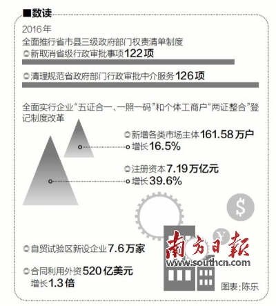 这是广东扎实推进全面深化改革的一个小切面。继2015年广东完成448项改革任务后,2016年又完成了368项改革任务,中央在广东部署安排的87项试点全部启动实施,其中13项顺利完成。全面深化改革的主体框架就此基本搭建。