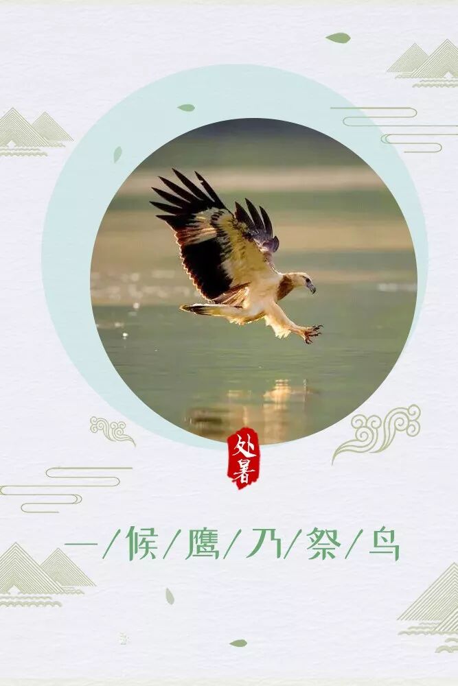 离离暑云散, 袅袅凉风起。 当晚风轻轻拂去夏天的燥热 当梧桐叶悄然变了颜色 袅袅凉风 吹来了飒爽的秋天 《中国天文年历显示》 今天(8月23日)18时2分 我们将迎来二十四节气中的 【处暑】 处,去也, 暑气至此而止矣。 ——《月令七十二候集解》 “处”,是“去”的意思 “处暑” 暑气至此而止 夏天的热烈正式落幕 秋日的美景铺陈开来 “三伏适已过,骄阳化为霖” “处暑”时节 “三伏天”已经过去 太阳不再灼热 昼夜温差逐渐拉大 凉风徐来 吹皱一池秋水 伴随着淅沥的秋雨 天气渐凉 当金黄的树叶飘落 你想与谁一起共享这醉人的秋景? 一候鹰乃祭鸟 老鹰感知到秋的气息 开始大量捕猎鸟类 它们把猎物陈列开 仿佛在举行一场祭祀仪式 二候天地始肃 天地万物逐渐凋零 一叶知秋 满树金黄的落叶 归根时翩翩起舞 三候禾乃登 “禾”指的是黍、稻、粱类农作物 “登”即成熟的意思 五谷丰登时 美不胜收 田间地头盛满了喜悦 处暑·习俗 “处暑”过,暑气止 天高云淡 斑斓的色彩在大地上 如水彩般晕染开来 这正是出游的好时节 “处暑”后是渔业收获的时节 在浙江沿海一带 会举行一年一度的“开渔节” 期盼渔业丰收 人们可以尽享种类繁多的海鲜 河灯,又名“荷花灯” 过去人们驾船出海 为免风暴肆虐 便点上荷花灯,任其漂流 盏盏花灯 寄托着人们祈保平安的美好心愿 处暑·秋味 【菱角】 成熟的菱角 白嫩剔透、爽脆多汁 能清暑泻热 解毒滋补 【龙眼】 老福州人 在“处暑”的时候要吃龙眼配稀饭 由于夏天人们消耗很多能量 而龙眼偏温性 有益心脾、补气血的作用 剥一碗白润如玉、清甜可口的龙眼 搭配着稀饭 不禁让人胃口大开 处暑·养生 【春捂秋冻】 “处暑”后早晚温差大 身体上会有一些凉意 但不要立马穿上厚衣服 初秋可能会有些“凉” 但还不会“寒” “秋冻”有利于让身体更适应天气变化 以便抵御冬天的严寒 所以 当秋风吹来 要不要穿上秋裤呢? 【润肺】 初秋的气候逐渐干燥 最容易对肺造成损伤 易引起感冒、支气管炎等疾病 这一时节 要多选择润肺的食品 四时俱可喜,最好新秋时。 柴门傍野水,邻叟闲相期。 最美人间处暑秋 如果说一年四季 都有令人陶醉的美景 那么最为舒爽的一定是初秋 “空山新雨后,天气晚来秋” 秋天的雨带着清凉而至 冲走了暑热 染红了秋叶 “落霞与孤鹜齐飞,秋水共长天一色” 秋天的水澄澈透明 水天一色的动人画面 勾起我们对远方亲人的思念 一叶知秋 当金黄的落叶翩翩然飘落脚边 秋天真的要来了 “处暑”之后 新秋之时 仰望最高远的天 观赏最恬淡的云 聆听最清新的雨 凝视最动情的水 一切都变得开阔了 处暑秋来 晚风微凉 愿你 有物暖身 有人暖心 秋风起,菱角香