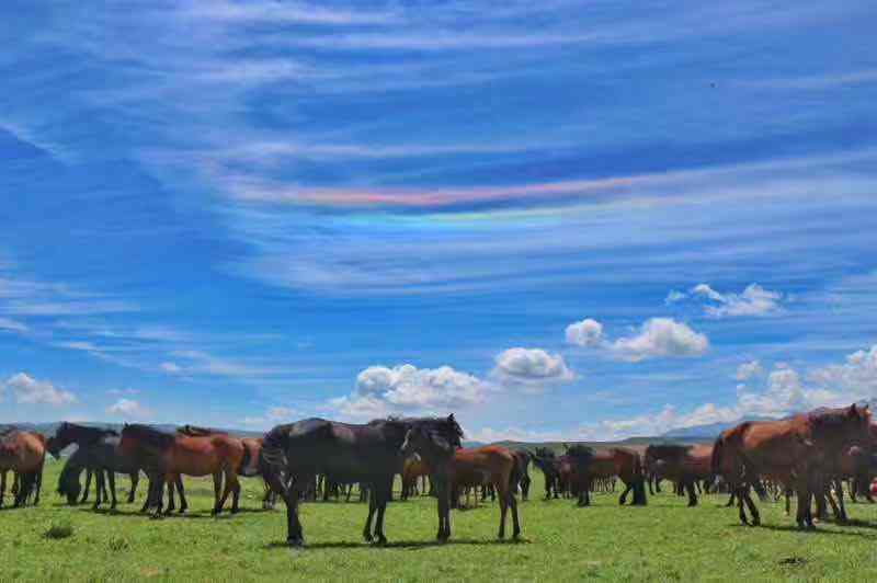 蓝天白天下,一匹匹雄健的骏马如疾风,似骤雨,长鬃飞扬,响
