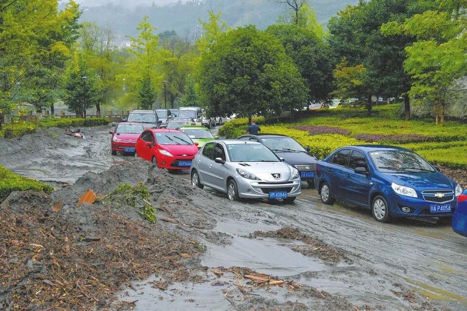 由于山洪、泥石流和塌方,从三江镇到水磨镇的县道已经中断,根本无法通行。唯一能够通行的只有一条村道,当地人叫做鹞子山村道,能通到水磨镇。但这条村道非常狭窄,在很多拐弯处,两辆私家车都无法错车,加上降雨不断,给游客撤离带来了很大难度。