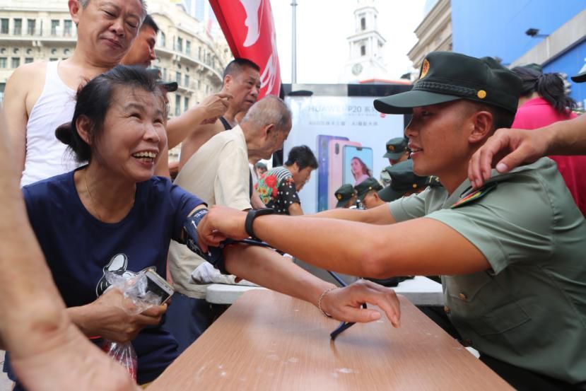 风雨无阻开展南京路上便民服务37年。每月的10号和20日都是八连的“为民服务日”。每逢这一天,连队都要派出服务小组到南京路为居民和过往的群众免费理发、补鞋、磨刀、量血压等,成为了南京路上一道靓丽的风景线。