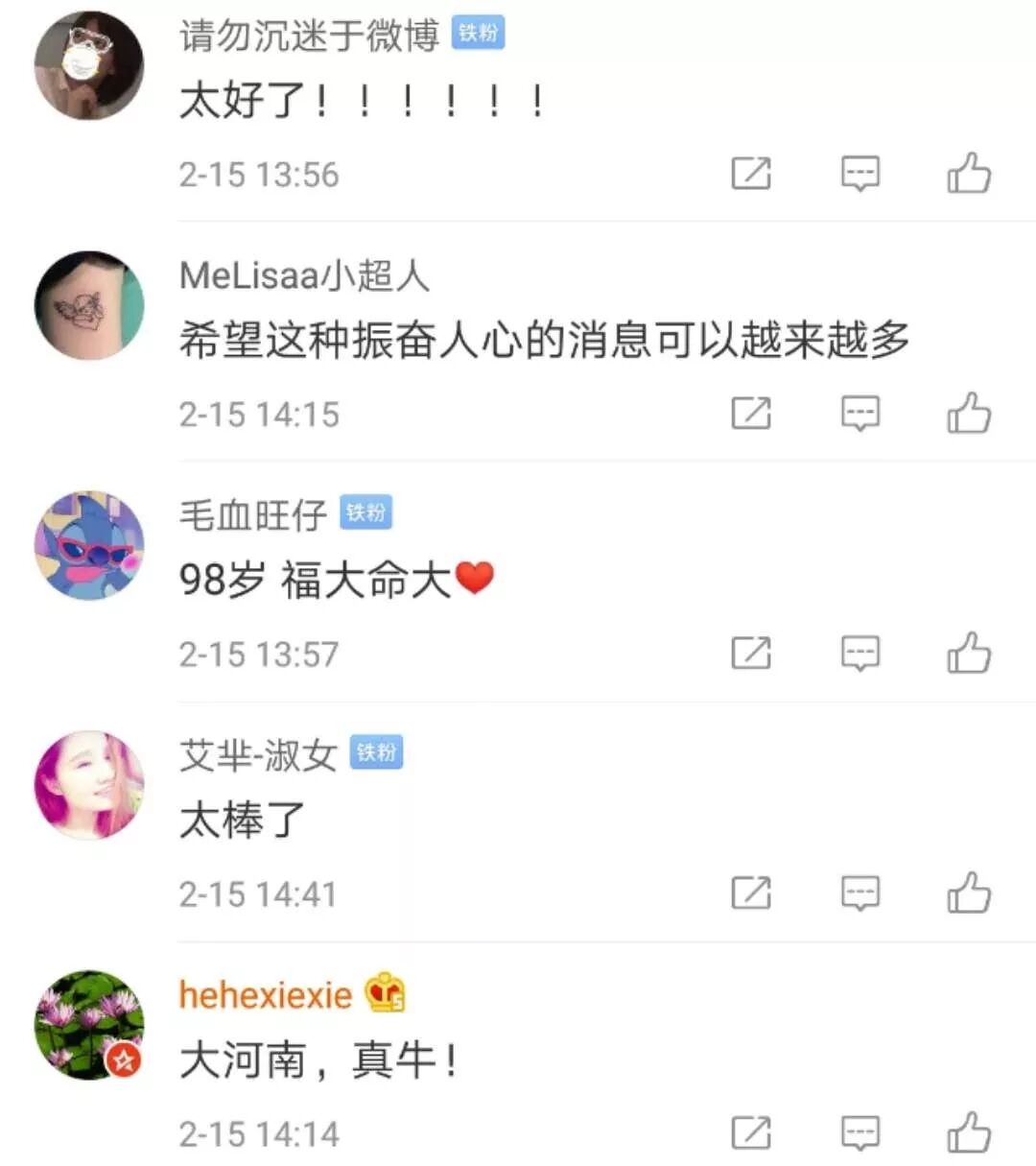 记者从南阳市中心医院获悉,2月14日晚,该院一名98岁男性新冠肺炎患者成功治愈出院,这也是目前全国治愈的最高龄的新冠肺炎患者。