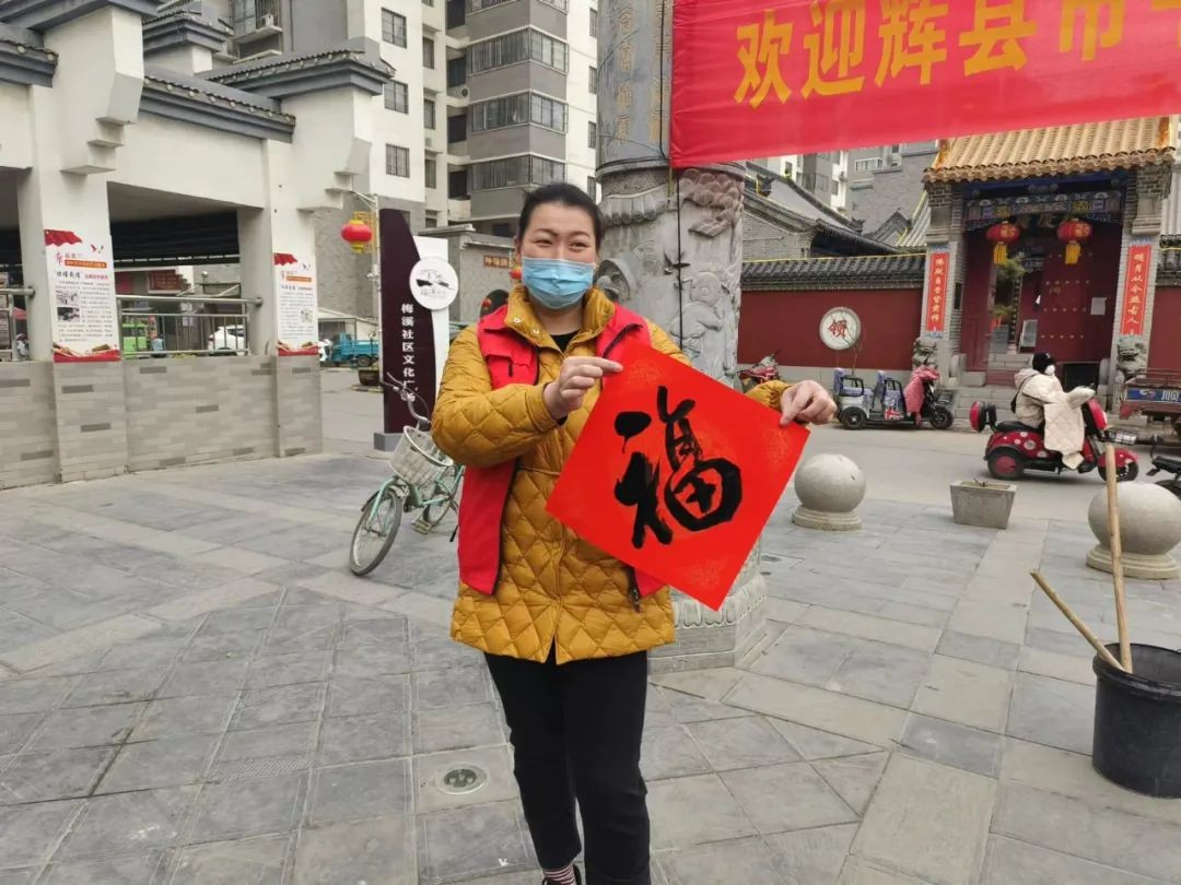 大河网讯 1月20日上午,辉县市百泉镇新时代文明实践文化广场上热闹非凡,文艺志愿者们正铺纸研墨,精心挑选对仗工整、寓意祥和的内容,谈笑间,沉稳运笔,将新年祝福诉于笔端、流于线条。