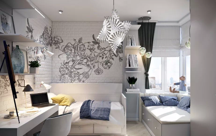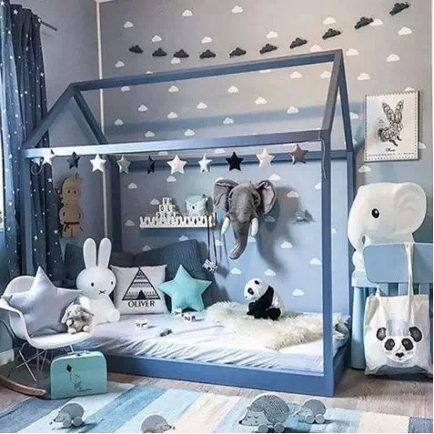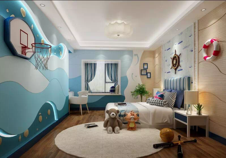 给孩子布置房间的时候家长可以询问一下孩子喜好再开始动手。可以布置各种海洋主题房间、太空主题房间、迎合孩子喜好,给孩子留个完美的童年记忆。