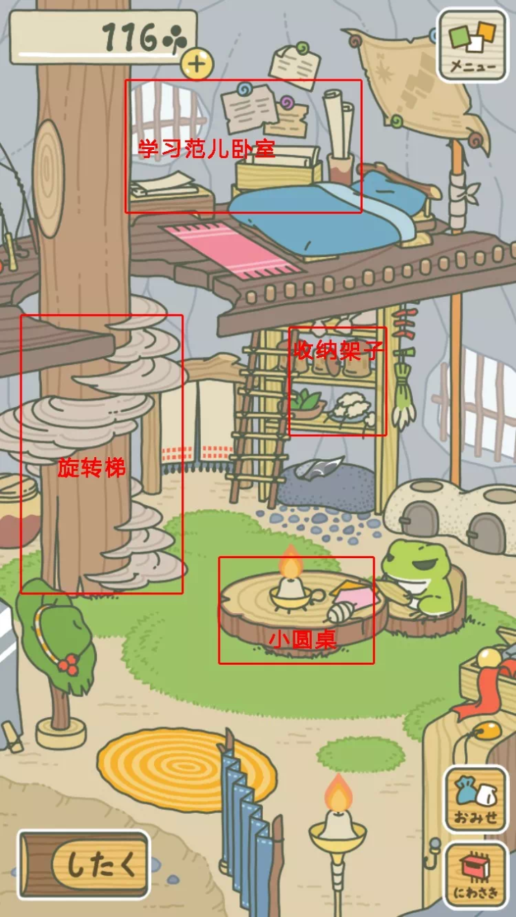 色调选浅亮可爱的、多写可爱的卡通图案、要有陪伴的玩偶等等。也可以像蛙儿子一样布置一个小梯子。