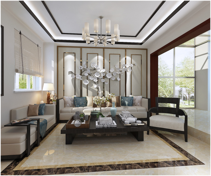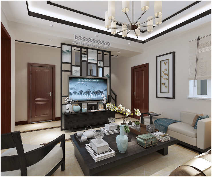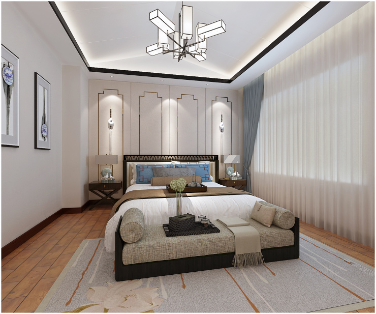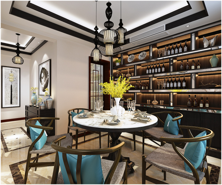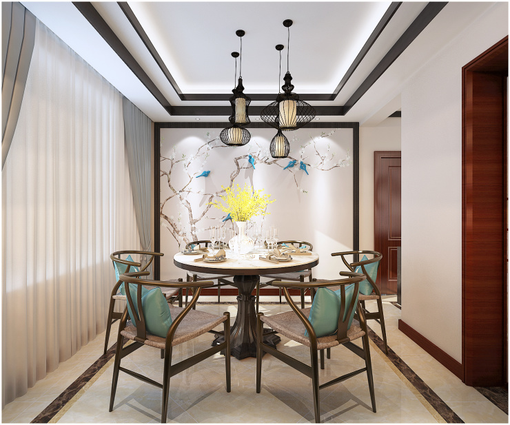 中式风格也有很多种,今天的这套案例是现代简约中式的感觉,客餐厅位置顶面和墙面都采用了简单的线条搭配、突出了新中式的特点。家具也不似传统中式的纯实木深色系,都是以简约的感觉为主。喜欢轻松舒适的感觉可以参考哦