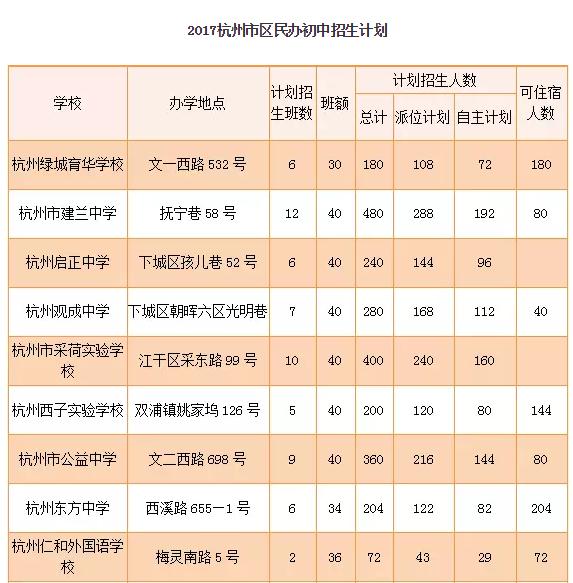今年杭州市区民办初中的招生方式跟去年一致,实行总名额的40%自主招生,60%电脑派位,除自主招生外,其余全部名额进行网上报名、电脑派位;零门槛网上报名不变。