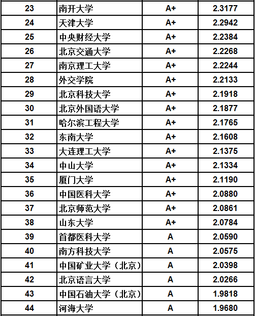 本科毕业生就业质量指标用排名加等级标识,等级标准如下
