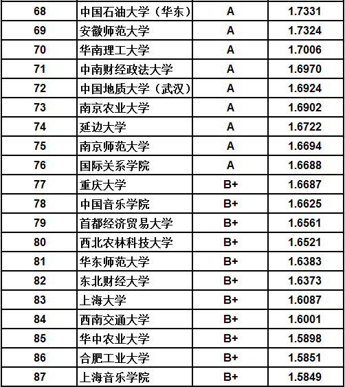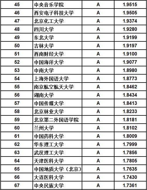 注:表中得分是以全国大学本科毕业生平均质量为1计算的。