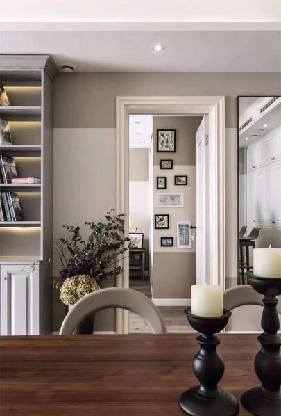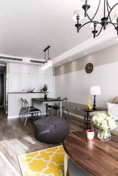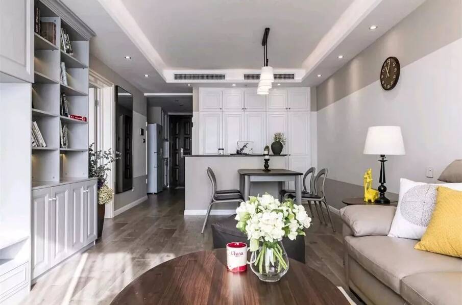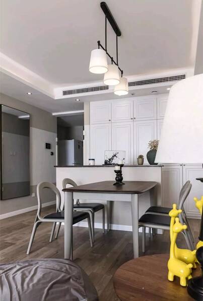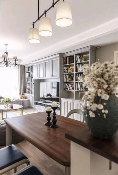 整个客厅餐厅空间连贯通都,在满足了丰富的收纳功能基础下,搭配上美感的装饰,打造出一种现代惬意的生活气息。