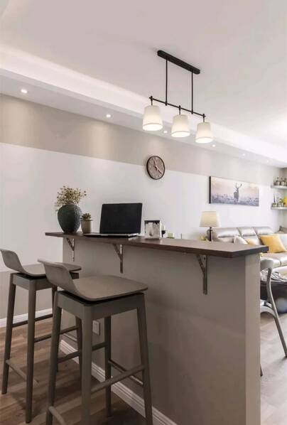 靠着餐桌的背后,还有一张吧台,可以充当书桌功能。