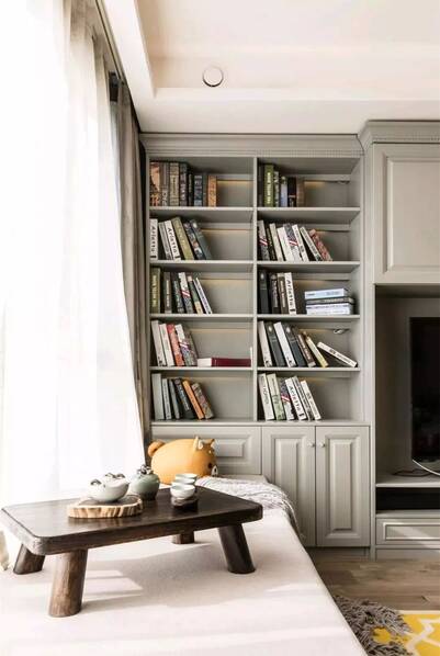 窗边的飘窗摆一套小茶桌,在这里既可以品茶赏人生,又能在午后惬意地阅读放松。