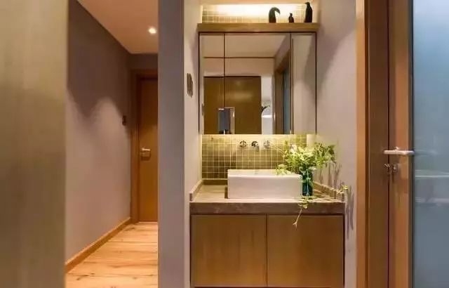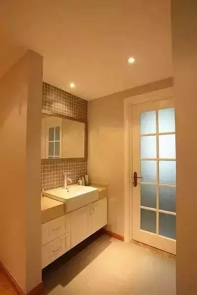 如果这些都不喜欢的话,可以试着将卫生间一分为二,洗面台和水池放在浴室的外面。完全隔绝了洗澡时的水气。但是所占空间略大,小户型不建议采用这种方式。